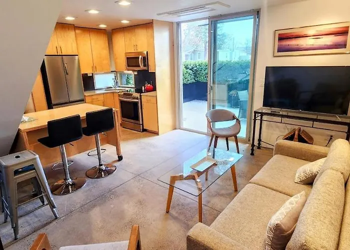 Elegant Townhome In Heart Of Down Town has a patio and a sitting area, and comforts such as climate control. The bathrooms offer a bath and a shower. Additionally, you'll find a hairdryer and bath sheets.